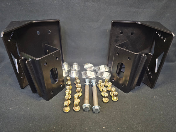 Title says it all! I did my best to get the spring eyelet in the stock position. There is 1 set of holes that will lower ride height, but the bracket will interfere with the bed. Built from 3/16" PNO mild steel, fixture welded and powder coated BK08 black.